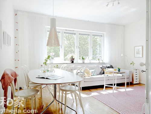 纯净的用色是扩展小户型客厅面积的方案之一,让客厅加入更多的新鲜空气,我们不要吝啬墙面区域,多开几扇窗户吧,你要相信明媚阳光对两人甜蜜生活的诱惑力。茶几的选用只是一个轻巧的四角小圆桌,从而给客厅预留了更多的使用空间。简易线条的餐桌和素雅纸质吊灯的参与,让客厅显得更加轻盈灵动。p9h易佰装饰网 100装饰-泰州装饰网 泰州装饰行业门户网站[泰州装饰招标/泰州装潢效果图/泰州样板房/泰州装修公司]