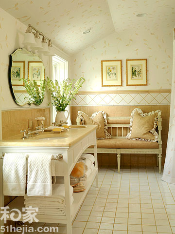 盥洗区与休憩空间融合在了一起,打造出一个轻松愉悦的清洗区。简单的造型、利落的线条使这个空间显得井然有序,米白色的洁具是清洁区万能的搭配色系,体现出清爽洁净的特色。充满田园风情的墙面、靠包将空间装点的丰满又不失优雅。EMv易佰装饰网 100装饰-泰州装饰网 泰州装饰行业门户网站[泰州装饰招标/泰州装潢效果图/泰州样板房/泰州装修公司]